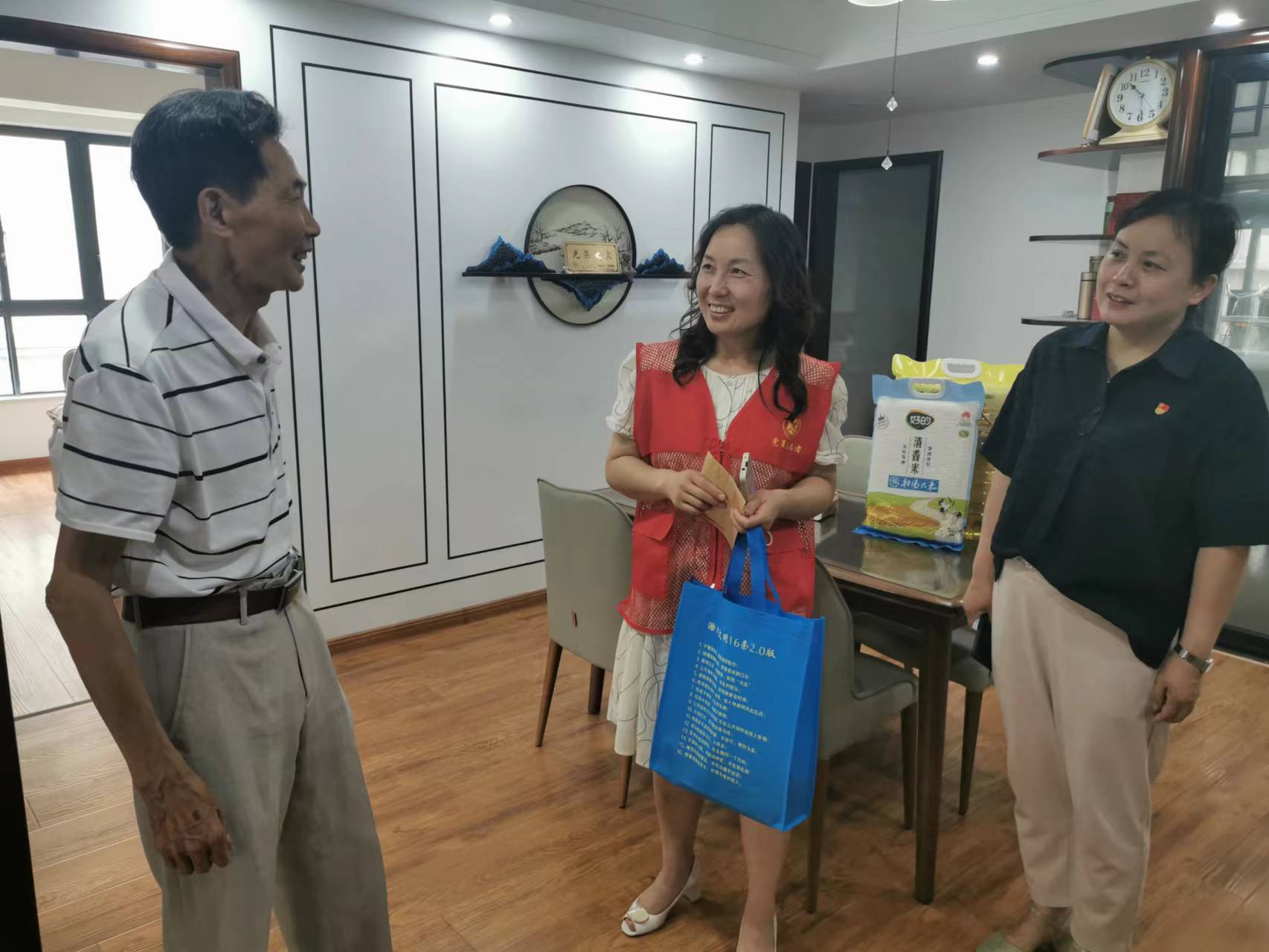 在天逸華庭小區(qū),志愿者們看望55年黨齡的老黨員甘黃興,關(guān)切地詢問他的家庭狀況、日常生活,表達(dá)對他多年發(fā)揮黨員先鋒模范作用、敬業(yè)奉獻(xiàn)的敬意,鼓勵他繼續(xù)弘揚光榮傳統(tǒng),發(fā)揚優(yōu)良作風(fēng),關(guān)心和支持社區(qū)工作。