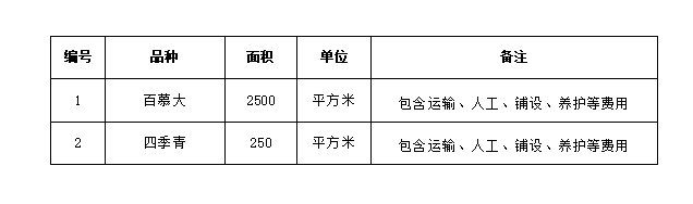 2.本次招標(biāo)進(jìn)行一次性報(bào)價(jià),報(bào)價(jià)后不得修改。最終以總價(jià)進(jìn)行評(píng)審。報(bào)價(jià)應(yīng)包含但不限于貨物采購(gòu)、運(yùn)輸、裝卸、種植、養(yǎng)護(hù)及稅金等費(fèi)用,我司不再支付其他任何費(fèi)用。