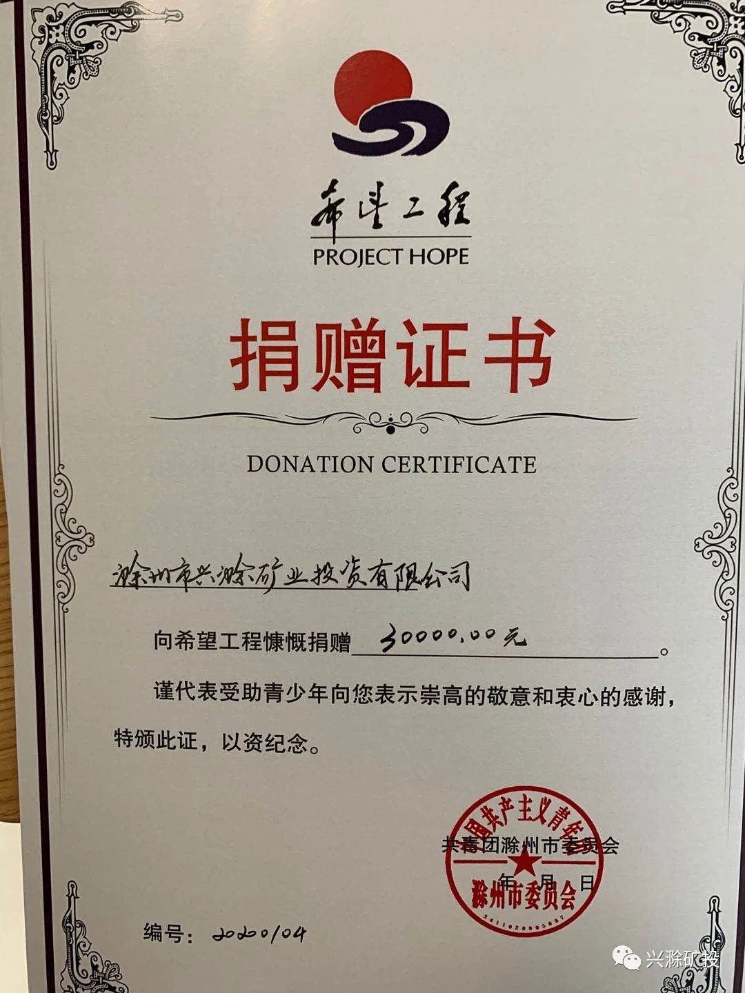 9月8日上午,市礦投公司受邀參加滁州希望工程2020圓夢大學(xué)助學(xué)金集中發(fā)放儀式,并被共青團(tuán)滁州市委員會(huì)、滁州市希望工程辦公室授予“愛心企業(yè)”稱號!